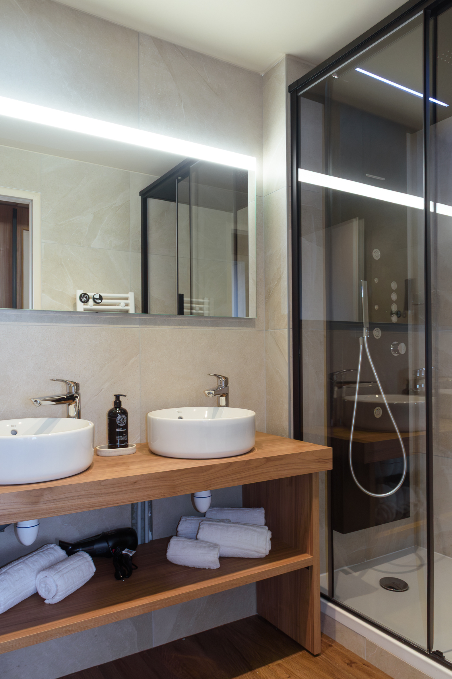 Chaque appartement, du studio au 10 personnes, a été repensé avec soin : design moderne, matériaux nobles, et une ambiance chaleureuse pensée pour votre bien-être. Profitez de prestations haut de gamme, notamment de douches hammam privatives dans tous les hébergements, pour une expérience de détente absolue après une journée sur les pistes.